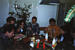 Bluwu, Silke, Taxi, Svenman, Mo und Olli beim Frühstücken